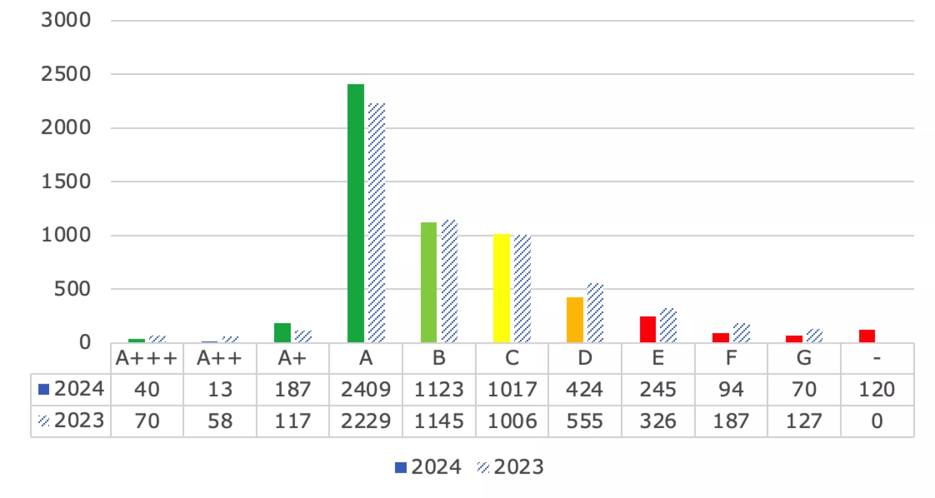 De 120 woningen zonder energielabel betreffen vooral onzelfstandige eenheden. Het labellen van deze kamers vindt begin 2025 plaats. Daarnaast zijn de labels van een nieuwbouwcomplex nog niet formeel afgemeld; dit betreft 45 woningen met een groen energielabel.